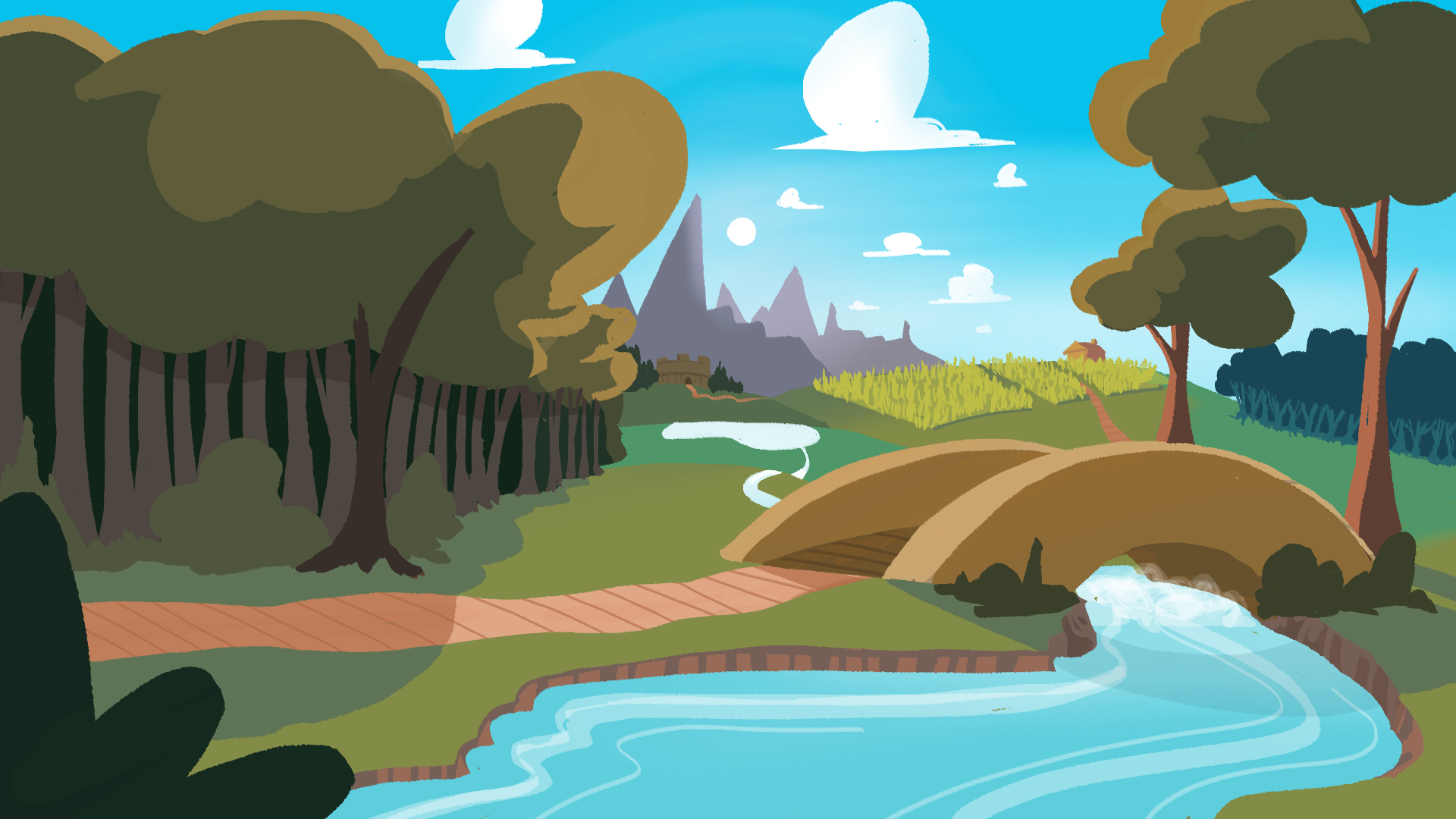 Color keys for a 2D animated children’s feature. Background layout by Logan Mann.